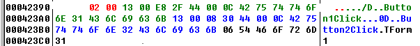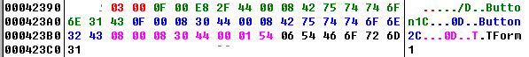 通过上述结构,我们知道TPtr结构最短长度为8字节。这里Button3.Name:='S',所以需要在前面Button1、Button2事件指针列表中挖出8个字节。我选择将