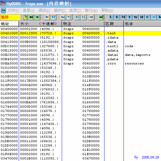 Alt+M打开内存察看窗口,记下fraps.exe进程的数据。