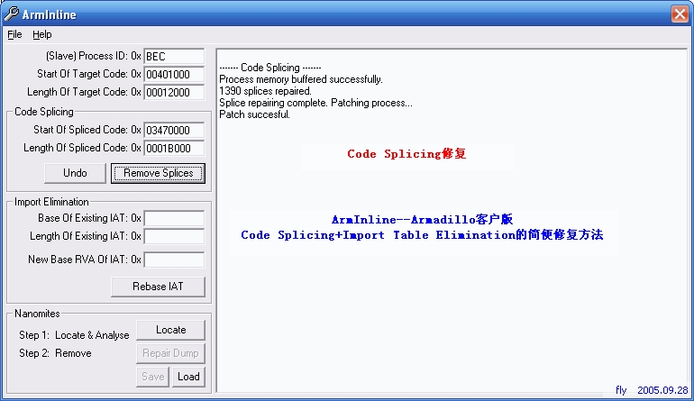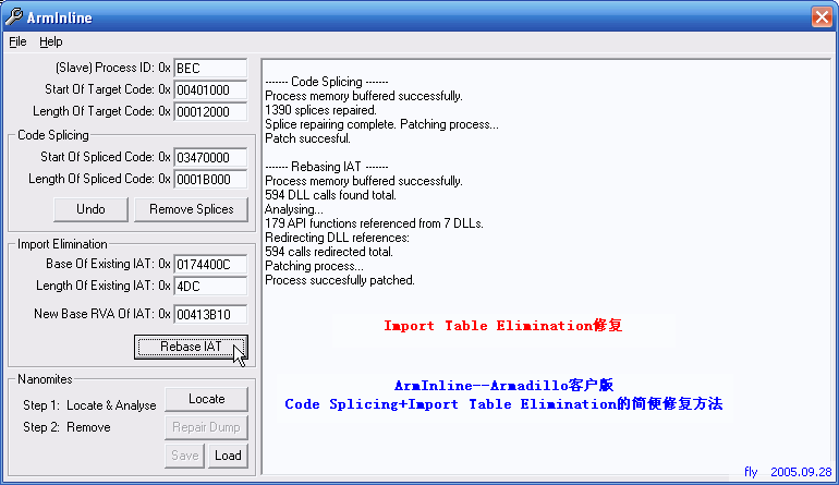 ArmInline——Armadillo客户版Code Splicing+Import Table Elimination的简便修复方法