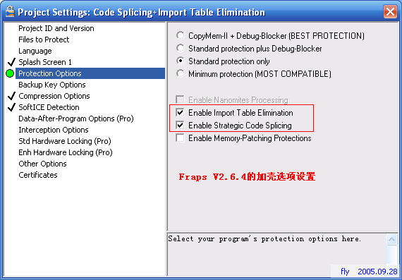 Fraps V2.6.4的加壳选项应该如下: