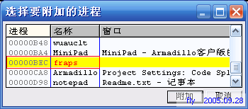 所以我找了Fraps V2.6.4来演示一下如何用ArmInline来使得Armadillo脱壳变得简单点。