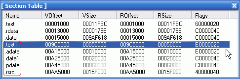 用LordPE打开UnPacKed.exe的区段,记下.text1区段的ROffset=009C5000。Wipe Section Header末尾的几个壳区段:.text1、.adata、.data1、.pdata、.rsrc,用WinHex删除自009C5000至末尾的数据,用00清掉Section Table里面的这5个区段信息。