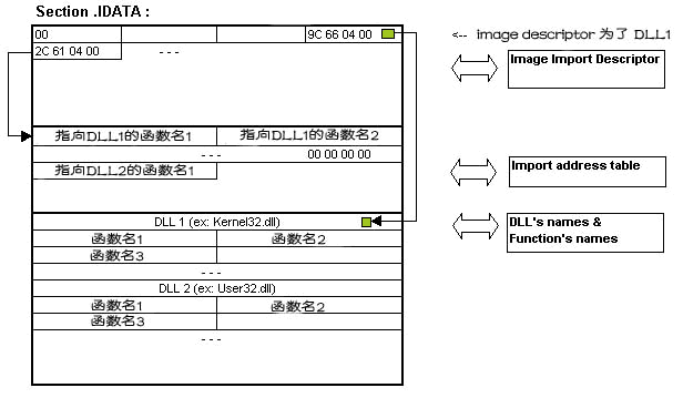 在这,我们选取详细的解释PE文件其中的一个section(节) : idata 节.