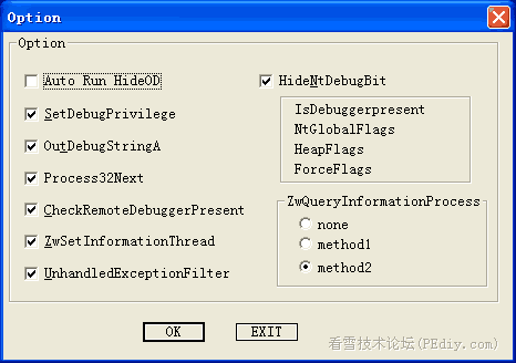 看到十几种保护方式是不是有点想退的感觉,那么有没有什么方法可以比较简单的跳过反od保护体系,进行动态代码分析呢?当然有,这篇文章就是知道你怎么去穿透ExeCryptor保护体系,从而进行动态代码分析。下面我们来一步一步的穿透它的保护体系。