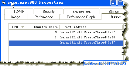 现在可以确定是第二种方式,那么外壳创建了几个线程呢?用process explorer看看线程信息: