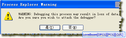 设置好了,然后在process explorer里Debug一下试试,选择时会有提示: