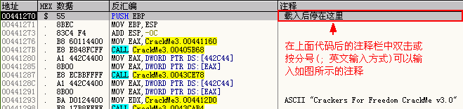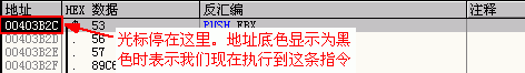 我们所看到的那些 PUSH EBX、 PUSH ESI 等都是调用子程序保存堆栈时用的指令,不用管它,按 F8 键一步步过来,我们只关心关键部分: