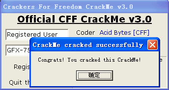上一篇是使用入门,现在我们开始正式进入破解。今天的目标程序是看雪兄《加密与解密》第一版附带光盘中的 crackmes.cjb.net 镜像打包中的 CFF Crackme #3,采用用户名/序列号保护方式。原版加了个 UPX 的壳。刚开始学破解先不涉及壳的问题,我们主要是熟悉用 OllyDBG 来破解的一般方法。我这里把壳脱掉来分析,附件是脱壳后的文件,直接就可以拿来用。先说一下一般软件破解的流程:拿到一个软件先别接着马上用 OllyDBG 调试,先运行一下,有帮助文档的最好先看一下帮助,熟悉一下软件的使用方法,再看看注册的方式。如果是序列号方式可以先输个假的来试一下,看看有什么反应,也给我们破解留下一些有用的线索。如果没有输入注册码的地方,要考虑一下是不是读取注册表或 Key 文件(一般称 keyfile,就是程序读取一个文件中的内容来判断是否注册),这些可以用其它工具来辅助分析。如果这些都不是,原程序只是一个功能不全的试用版,那要注册为正式版本就要自己来写代码完善了。有点跑题了,呵呵。获得程序的一些基本信息后,还要用查壳的工具来查一下程序是否加了壳,若没壳的话看看程序是什么编译器编的,如 VC、Delphi、VB 等。这样的查壳工具有 PEiD 和 FI。有壳的话我们要尽量脱了壳后再来用 OllyDBG 调试,特殊情况下也可带壳调试。
