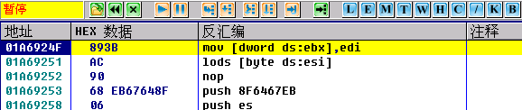 我们选不分析后中断在下面位置:(当然也就是壳的入口了)