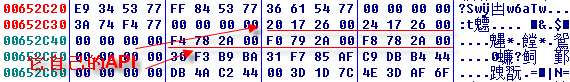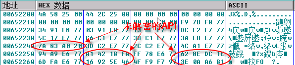 IAT已然解开,API地址还没有被写入,继续按shift+f9。到第20次后API地址解密完成: