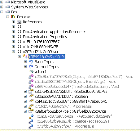 用Reflector再次打开dump.exe,这次Reflector能完全显示出来了。这就是Fox的本体。