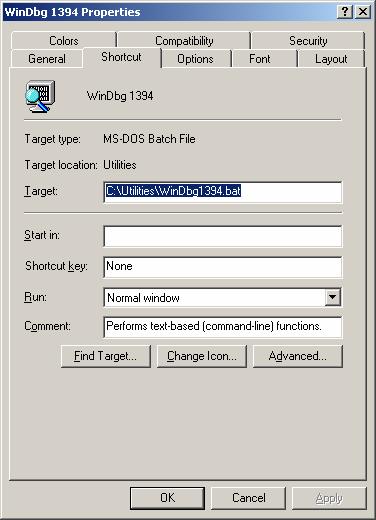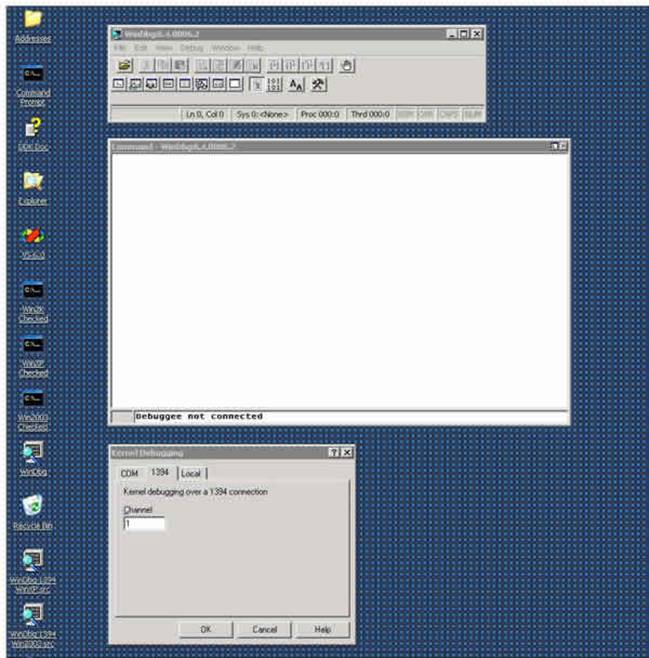 为了让事情变得简单,你可以在桌面建立快捷方式,以使用特定的workspace启动WinDbg,例如,使用1394连接: