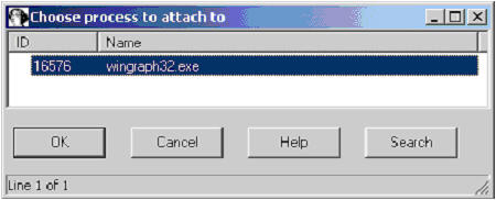 双击列表里的一个进程会自动挂起该进程,并附加到该进程,允许您不需要手动开启就可以调试它。该附加进程的工作可以从Windows到 Linux,从Windows到Windows, 从Linux到 Linux及从Linux到Windows.