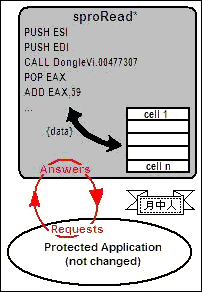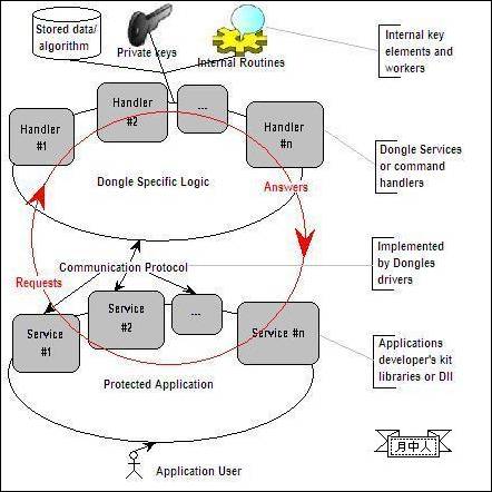 n 被保护的应用程序。应用程序与软件狗应用程序开发工具箱本地交互,调用它的API。从应用程序的观点看,就像调用一个代理对象,向它提出请求并等待回应或数据。对于知道这些软件工程对象的人来说,这是典型的设计模式。