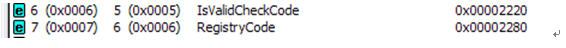 如上图有一个函数PcInfo.dll,里面导出了两个函数,RegistryCode 和IsValidCheckCode。通过OllyICE我们很容易找到这两个函数的实现过程。
