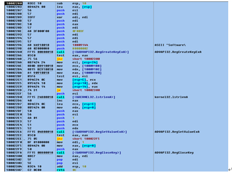 100022E6 FF15 04800010 call [<&ADVAPI32.RegSetValueExA>] ; ADVAPI32.RegSetValueExA