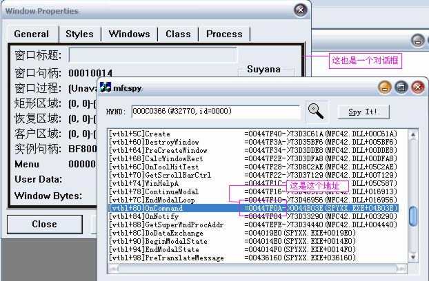 方法A:用MFC SPY找到OnCommand的地址。偶也不懂怎么说,看图2