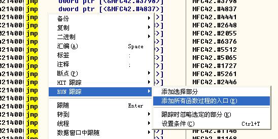 答:现在我主要是想分析它运行了哪些主要函数代码,用这个可以跟踪,如运行过了会有红色显示出来,只要是红色显示出来的,那算法的代码一定在这里面了。