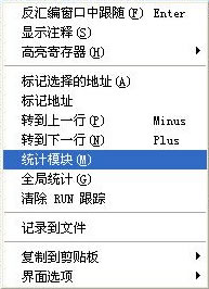 点查看菜单--run跟踪--选择一行echap518--点右键选“统计模块”,如下图: