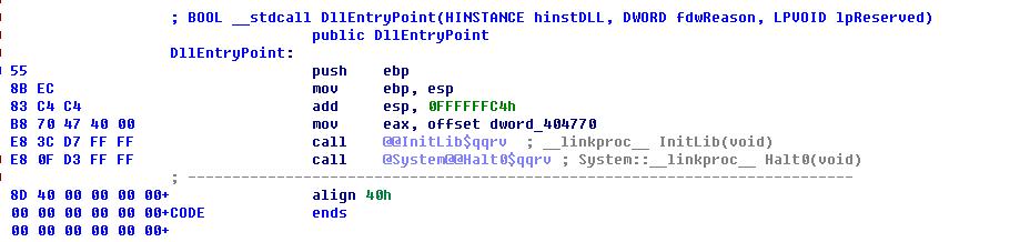 目前大多数病毒都用Delphi写,并且是动态库的形式,由于Delphi库旁大,分析人员在进行病毒分析时候,无从下手,唯一的一个DLLEntry仅仅看到如下代码(都是Delphi库函数,汗颜):