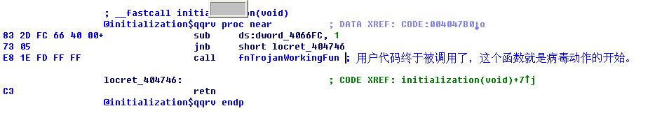 结束语:分析到这里,我们就知道,我们应该直接找FunTable中的函数,从而找到病毒作者写的代码处,进行快速分析。(FunTable地址在InitaTable中,InitTable地址,就是在调用InitLib函数时入口处的一条mov eax,address指令)