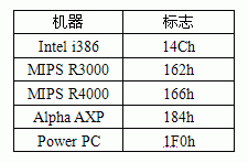 (1) Machine:两个字节,可执行文件的目标CPU类型,几种常见的CPU类型如下表: