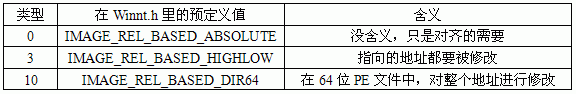(3) TypeOffset:是一个数组。数组每项大小是两个字节,其中高4位是重定位的类型,低12位是重定位地址,它与VirtualAddress相加就是PE映像需要修改的地址数据的指针。