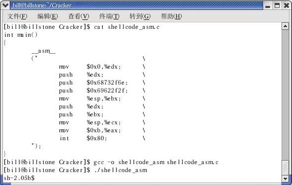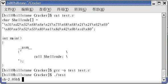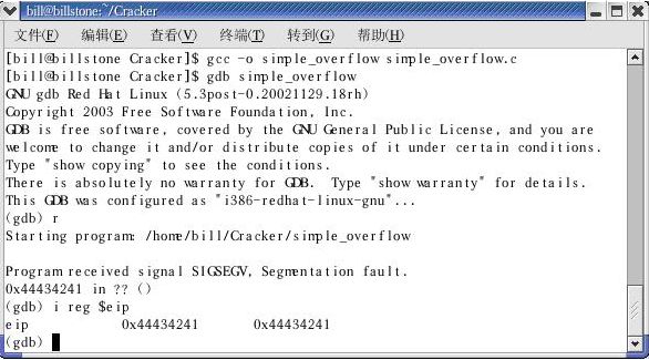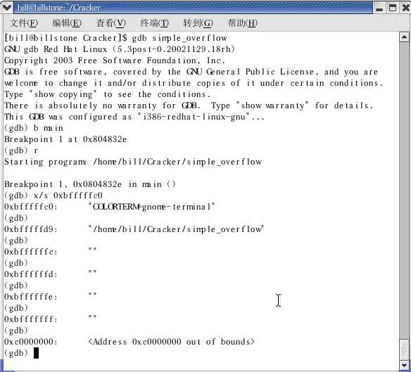 我的测试环境是Red Hat 9.0。当然你也可以使用其他的Linux版本,不过在高版本的Linux环境下可能会有防溢出机制(比如说Ubuntu 7.10);尽管说在这种环境下也许有高人可以做到溢出利用,但这已不属于本文章的范畴。如果你是小白,如果你想一次成功,推荐你先在RH9中测试。