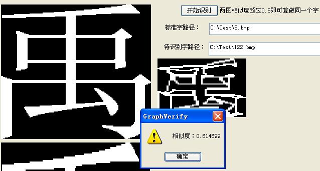 下面这个工程是当初我做的识别系统扣出来的一部分,只实现了对某个字和标准字的