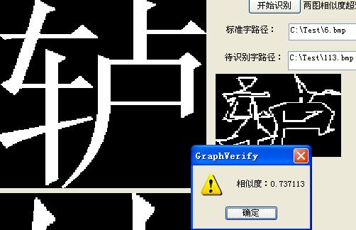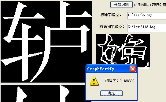 相似度对比部分。(对重叠汉字的区分识别、干扰线去除等操作还有点不完善,就去掉了。)
