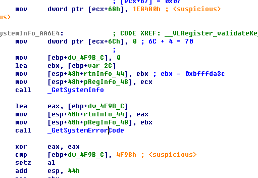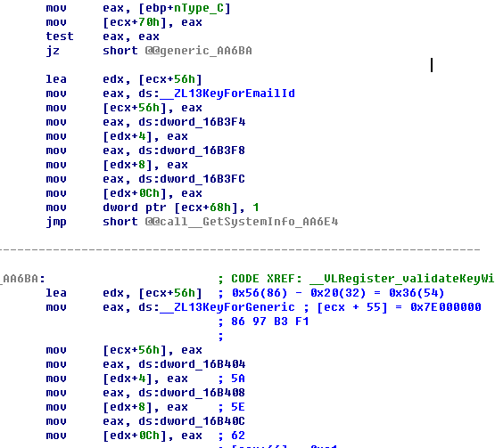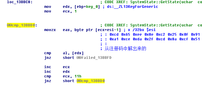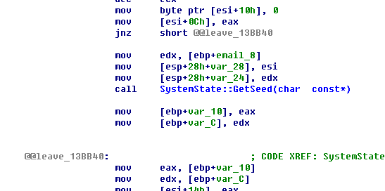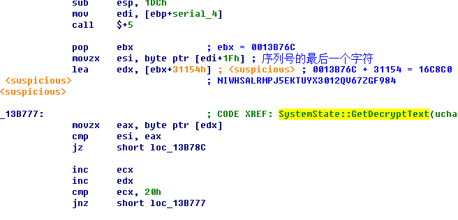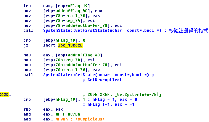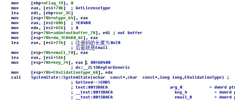 SystemState::GetFirstState 用来校验注册码的长度(0x20)和注册码的字符(数字和字母).