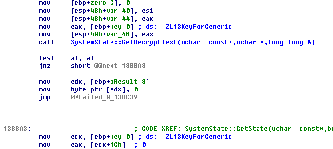 首先调用SystemState::GetDecryptText,然后对解出来的信息进行校验.