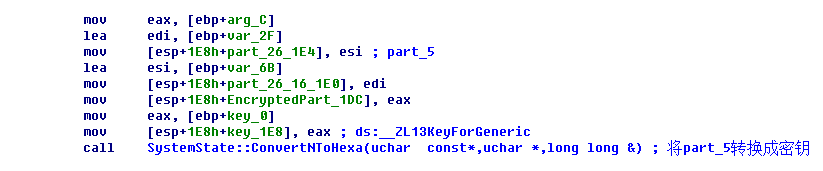 函数SystemState::ConvertNToHexa,将part_5转换为密钥(aes128),当成一个int64来看。