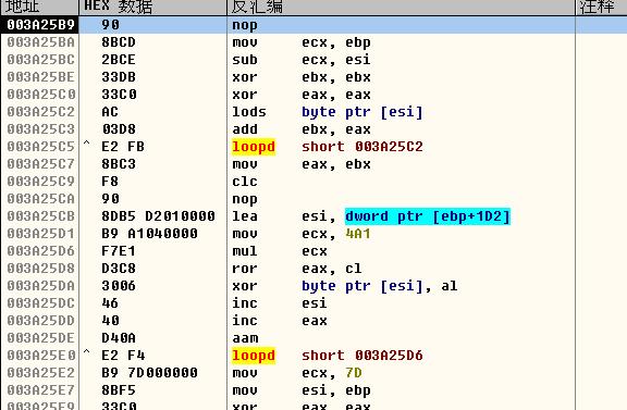 这在里,我们就知道了,原来壳是用一张表来处理CALL XXX的形式的。记下ESI的表头位址,不同的机器这个地址不一样,这张表以0000结束!在我这里这个地址就是