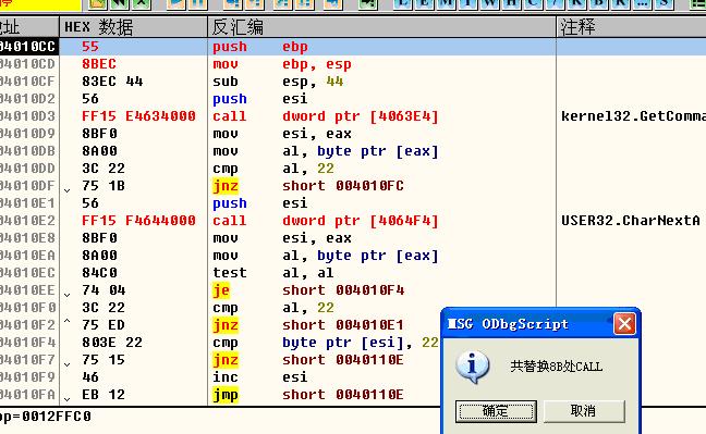 然后就是体力劳动了,呵呵,正好这两天初学OllyScript,也就想用脚本来恢复CALL XXX!