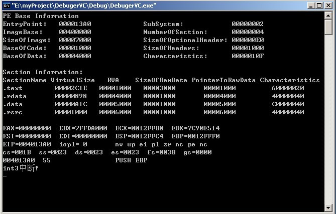 附件包含调试器的可执行程序:DebugerVC.exe