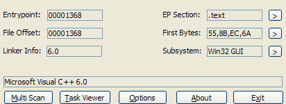 学习破解有一段时间了,中间几多中断。没办法,要毕业了,需要忙的事太多了。今天逃了几节课,没事找个软件来练练。(前几天开始学脱壳,但都是照着教程来的,今天试了试不看教程,呵呵)初次脱壳,错误难免,高手飘过.........