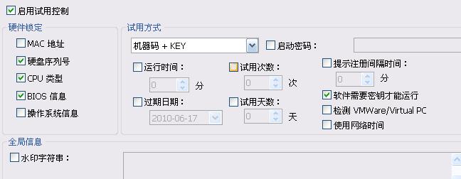 测试条件:用ZProtect.1.4.9.0.Preview.2 随便对一个notepad.exe和一个crackme.exe进行默认加密,但是"试用控制"-->"软件需要密钥才能运行" 项是勾选的。如图: