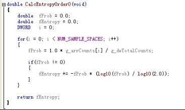 计算一个节或者一个PE文件的熵,可以从论坛中小喂的帖子下载到源代码。