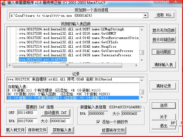 接下来我们修复IAT,刚才那个ImportRec窗口大家还没有关吧,呵呵~~