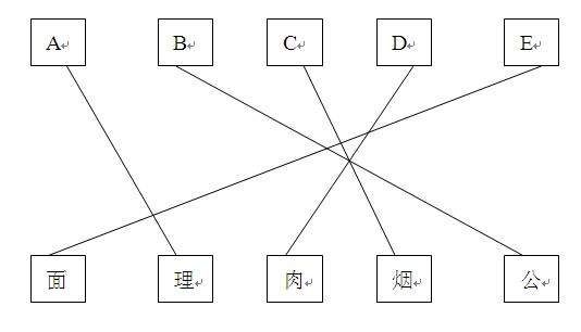 3、1a,2b,3c,4d,5e,是好朋友,如今张大成人,各自当上面包房老板\理发师\肉店老板\烟酒经销商\和公司职员.