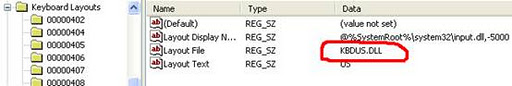 Keyboard Layout文件在注册表HKLM\SYSTEM\CURRENT CONTROL SET\CONTROL\KEYBOARD LAYOUTS下可以找到, 它们都是PE文件