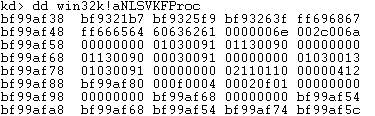 比如,我们设计NLSTable里的一个成员,他的头俩个字节是 00 05, 然后发送一个扫描码为0的按键消息,于是_aNLSVKFProc[5] 会被调用,在我的机子上是0x60636261