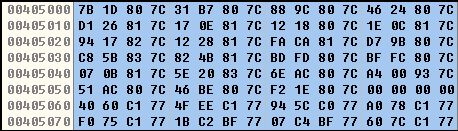 0040D0A6 8B40 08 mov eax, dword ptr [eax+8] ; kernel32.dll加载基址7C800000