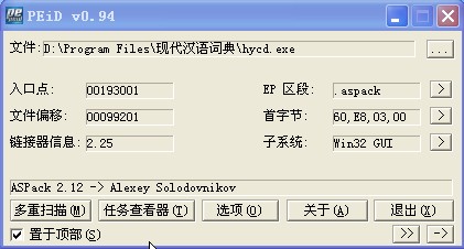 1、 查壳为ASPack 2.12 -> Alexey Solodovnikov