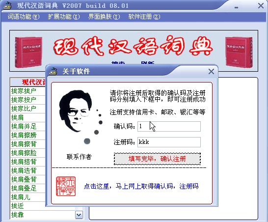 1、 首先注册软件,查看软件弹出的有关注册失败的信息框的内容。