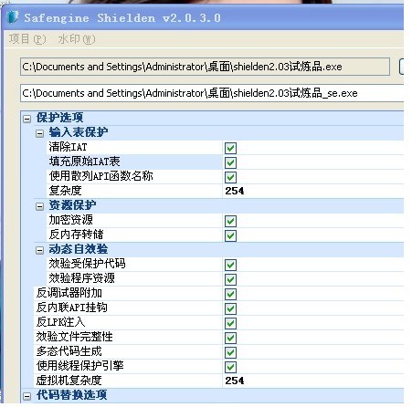 首先,我们来看一下我选择的选项(和保护有关的全都选上)