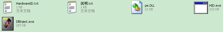 解压后就这些文件,DLLInject是主程序,HID是机器码文件生成用的,那个dll文件至今不知道做什么用的(猜测可能是优化CPU时用到)。直接运行DLLInject会弹出需要注册的对话框。