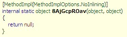 用ILDASM把代码导成il形式看入口函数终于能正常查看了,也是为数不多的能看到一些语句的函数(其他函数都是返回个null值就没了)。