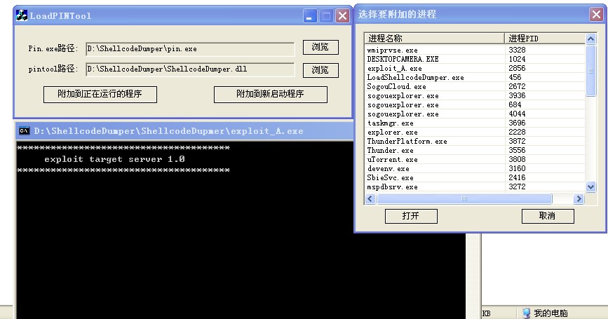 1。选择正确pin.exe和ShellcodeDumper.dll的正确路径